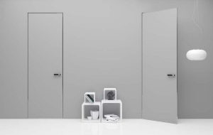 Это межкомнатная дверь, спроектированная так, чтобы быть малозаметной. Чаще всего её оформляют без наличников, с утапливаемой коробкой и скрытыми петлями. Поверхность двери обычно выравнивают под стену и красят тем же цветом.